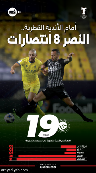 أمام الأندية القطرية.. النصر 8 انتصارات